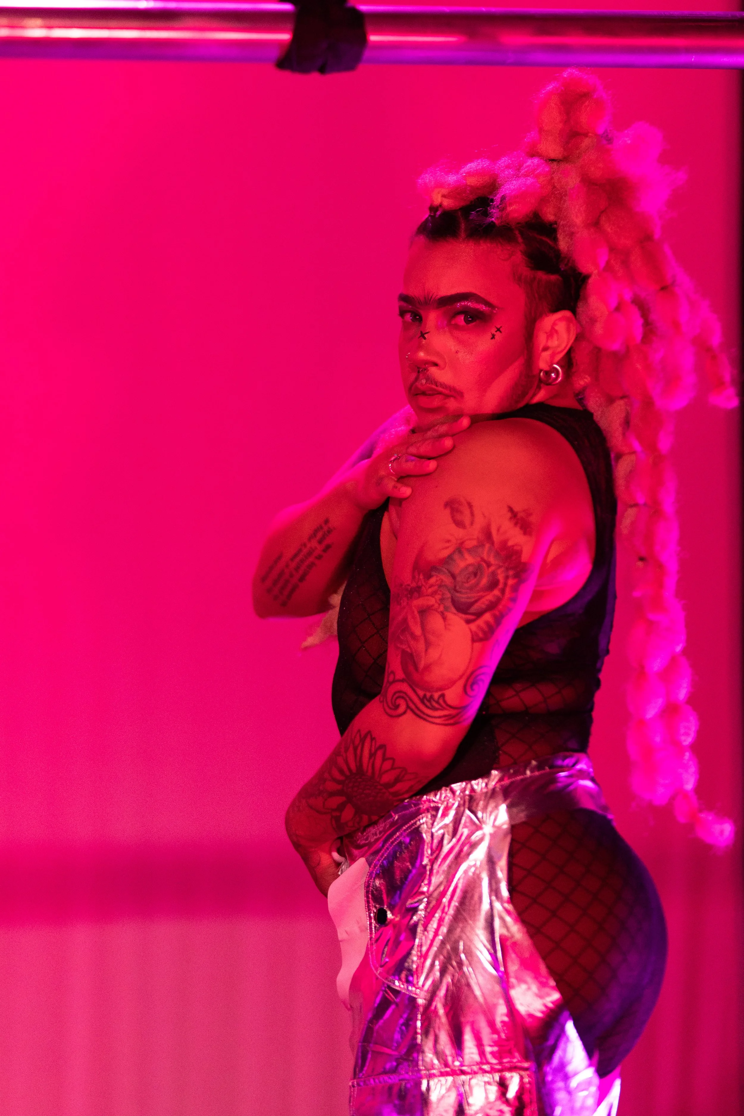 Mudd the Two Spirit (they/he/she) is a BiPoc Deaf/HoH two-spirit multidisciplinary drag and performance artist residing on occupied Ohlone Lands. Mudd operates on and off the stage as a full time performer, crew member and Haus member for the iconic drag shows “Tito Soto’s: Princess”, “Clutch the Pearls” and “Reparations: and All Black Drag Show.” Mudd’s approach to performance is focused through the lens of multiply marginalized identities which provide a richness of depth and perspective that’s been acquired through self-exploration within the support of these diverse communities.